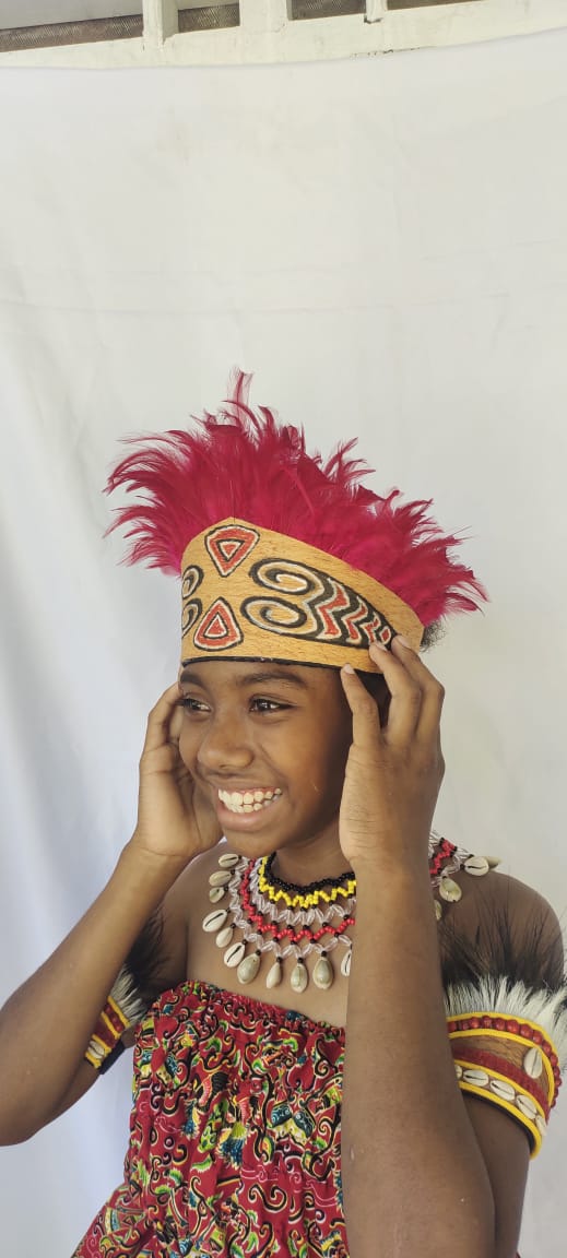 Mahkota Ukiran motif Papua bulu ayam polos