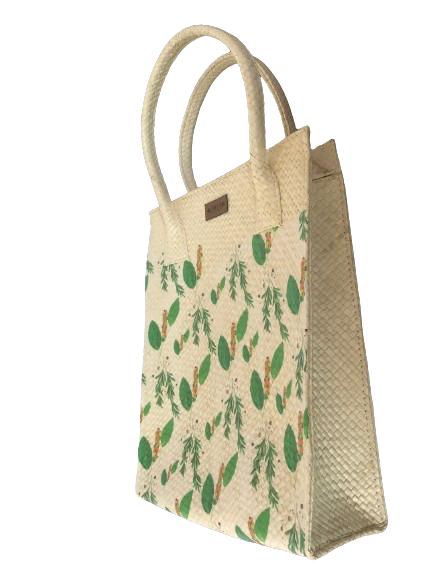 Tas ini merupakan hasil dari kreasi decoupage dengan keunikan di motifnya yang berasal dari tissue bermotif di atas media anyaman pandan. Inovasi kami di tas ini adalah menggunakan tissue dengan motif kearifan lokal khas Bangka Belitung Lada Variasi. Tas ini memiliki ukuran yang tinggi dengan dilengkapi resleting. Stok tersedia dan bisa dipesan dalam jumlah banyak dengan sistem PO. Serta bisa juga costum untuk motifnya.