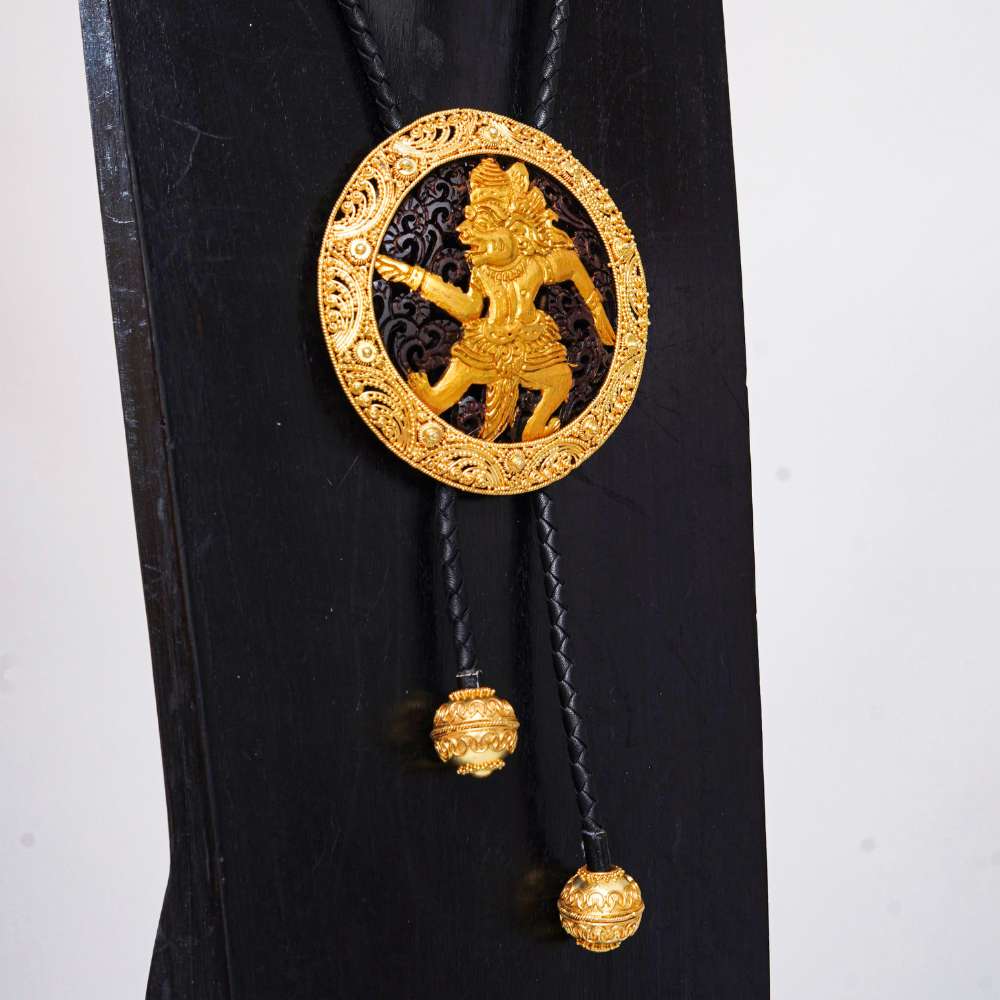 Jenis Bahan: Tembaga di gold plated 22k, batok kelapa dan kulit domba untuk bahan kalung