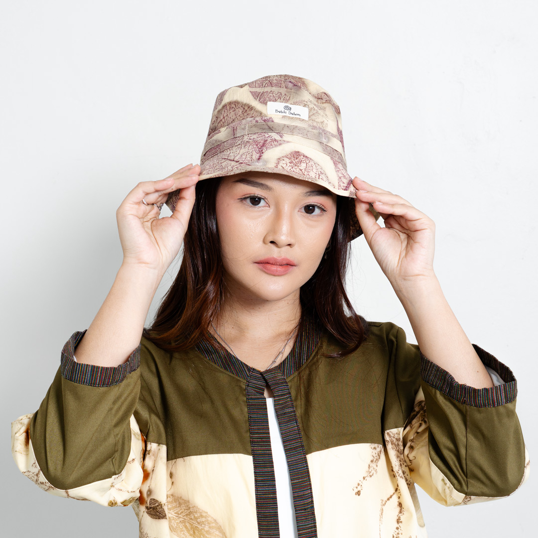 Topi Bucket Ecoprint cocok dipakai oleh anak anak maupun dewasa, membuat outfit makin keren.