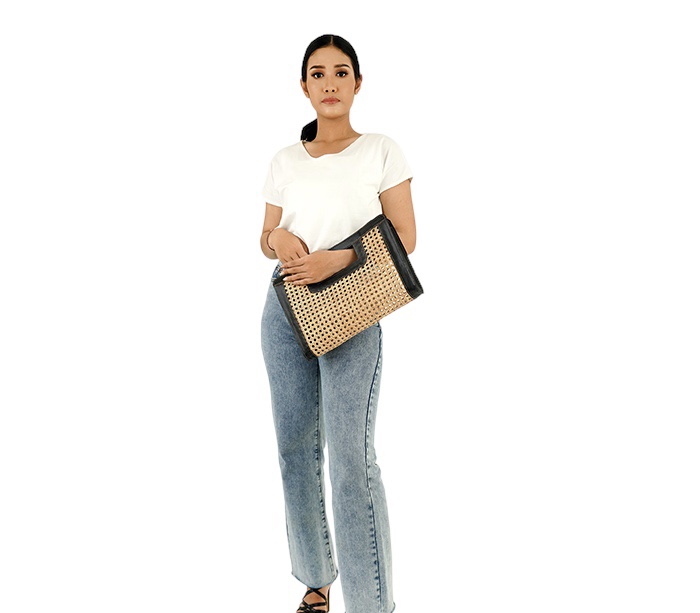 Perpaduan serat tumbuhan dan tumbuhan alami, dengan sentuhan anyaman Indonesia, didesain dengan model formal unisex.