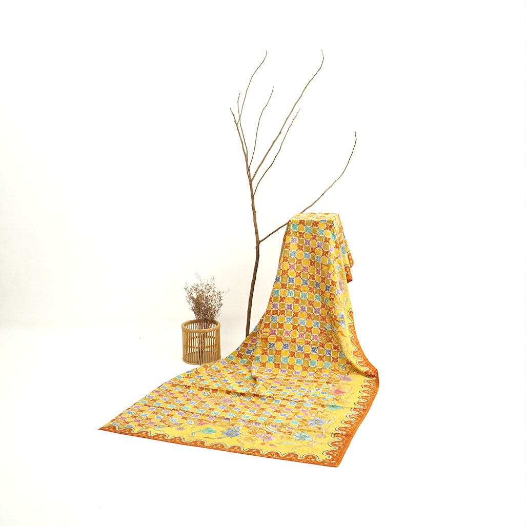 Makna Motif: Mengambarkan daun-daun dan bunga tropis yang ada di lingkungan sekitar pada awal musim kemarau, dengan motif daun – daunan seperti betadin, suren, jarak wulung, bunga kenikir, melati belanda dan lain sebagainya, yang tampil dengan warna kuning cerah dari kayu tegeran